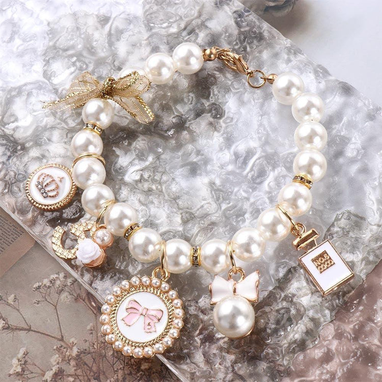 Collar Cat Supplies Bow Necklace Dog Cat Princess Adjustable Pet Pearl Collar