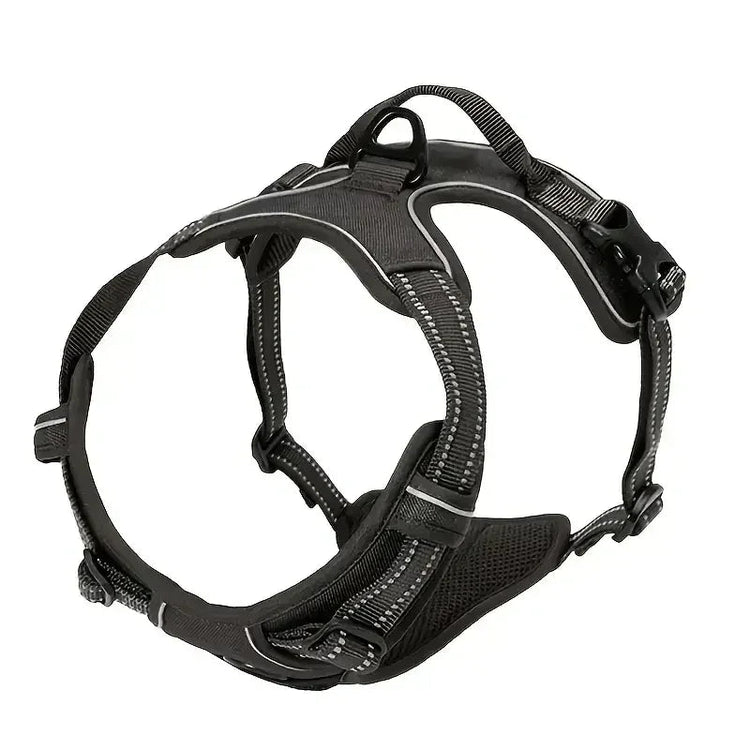 Dog Large Harness, No Pull Dog Harness Reflective Adjustable Soft Padded Pet Vest with Front & Back 2 Metal Leash Hooks, 2 Snap Buckles and Easy Control Handle