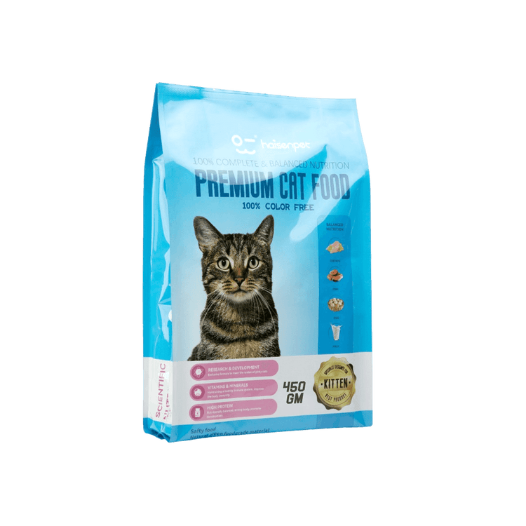 Haisenpet Premium Kitten Food Chicken, Fish, Egg, and Milk provide 100% of all essential nutrients that kittens need to grow healthy and strong. It is made with the best quality ingredients sourced from nature. The inclusion of high-quality meat and fish ensures the supply of essential amino acids to maintain good muscle mass and promote overall growth and development.