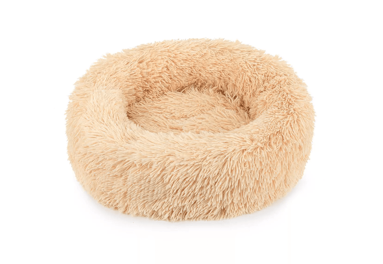 Round Pet bed, Plush Soft Washable Self-Warming Calming Dog Bed Donut Cuddler Round Dog Bed Comfortable for Sleeping in Winter(Beige,50cm)
