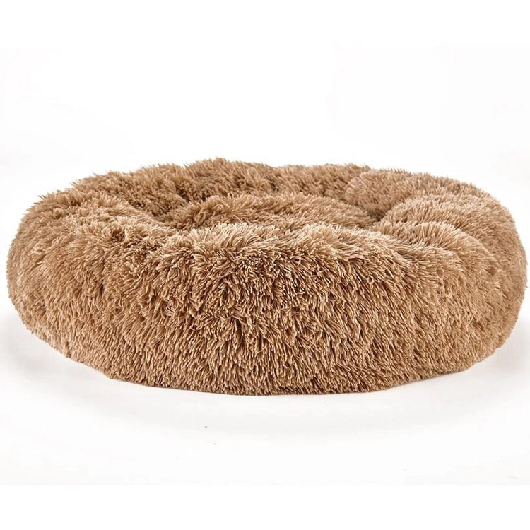 Round Pet bed, Plush Soft Washable Self-Warming Calming Dog Bed Donut Cuddler Round Dog Bed Comfortable for Sleeping in Winter(Beige,50cm)Brown