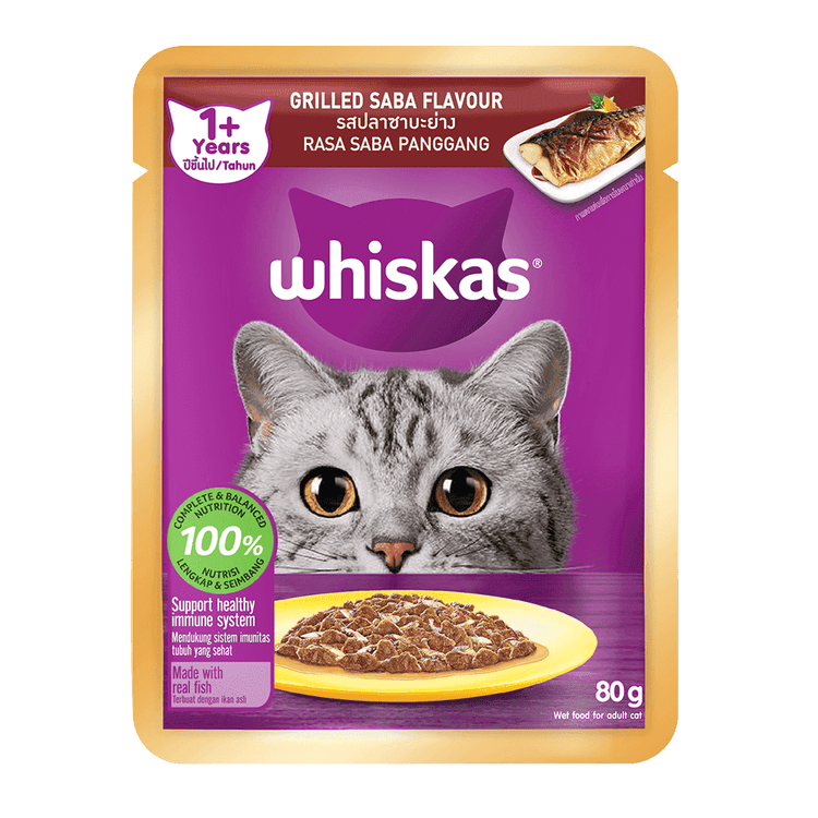 Whiskas Adult Cat (1+ year) Pouch – Grilled Saba Flavor 85g